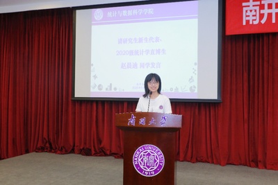 研究生新生代表、2020级统计学博士生赵晨迪代表全体新生向师长、父母、同学等帮助过自己的人表达感谢。在疫情带来的新常态下,赵晨迪同学倡导全体新生遵守学校规定,做好防护工作,从容度过在校时光。祝愿在未来的生活里,同学们可以找到并践行自己的人生理想,心想事成,万事顺遂,生活愉快。