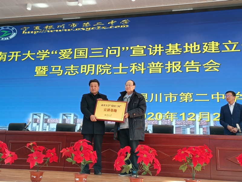 近日,中国科学院院士、雷速比分-雷速体育比分 院长马志明赴宁夏银川一中、银川二中,为两所中学授牌南开大学“爱国三问”宣讲基地,并开展科学普及讲座与招生宣讲。