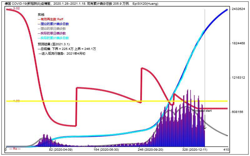图2. 德国新冠疫情发展预测(至2021年3月1日)