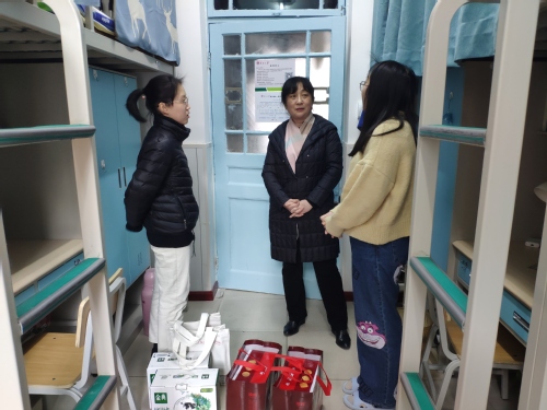 温情留校包,呵护学子留校生活。学院领导、学生辅导员深入到学生宿舍当中,慰问因疫情原因无法返乡过年的留校学生,向他们送去学院的关怀,并发放留校生活物资,同时提醒他们要做好个人疫情防护,坚持定期与家中进行联系,不断增强体育锻炼,调整身心状态,用好校内资源,提升个人综合素质,有任何问题和困难随时向学院反映,学院都将尽力帮助解决。