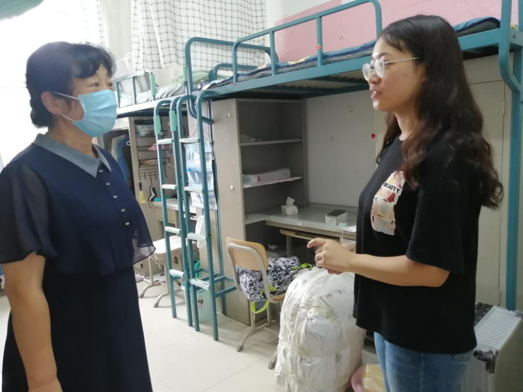 在报到当天,学院党政领导班子来到宿舍看望新生,亲切地与初入南开园的学生们进行交谈,并勉励大家好好学习、热爱生活。