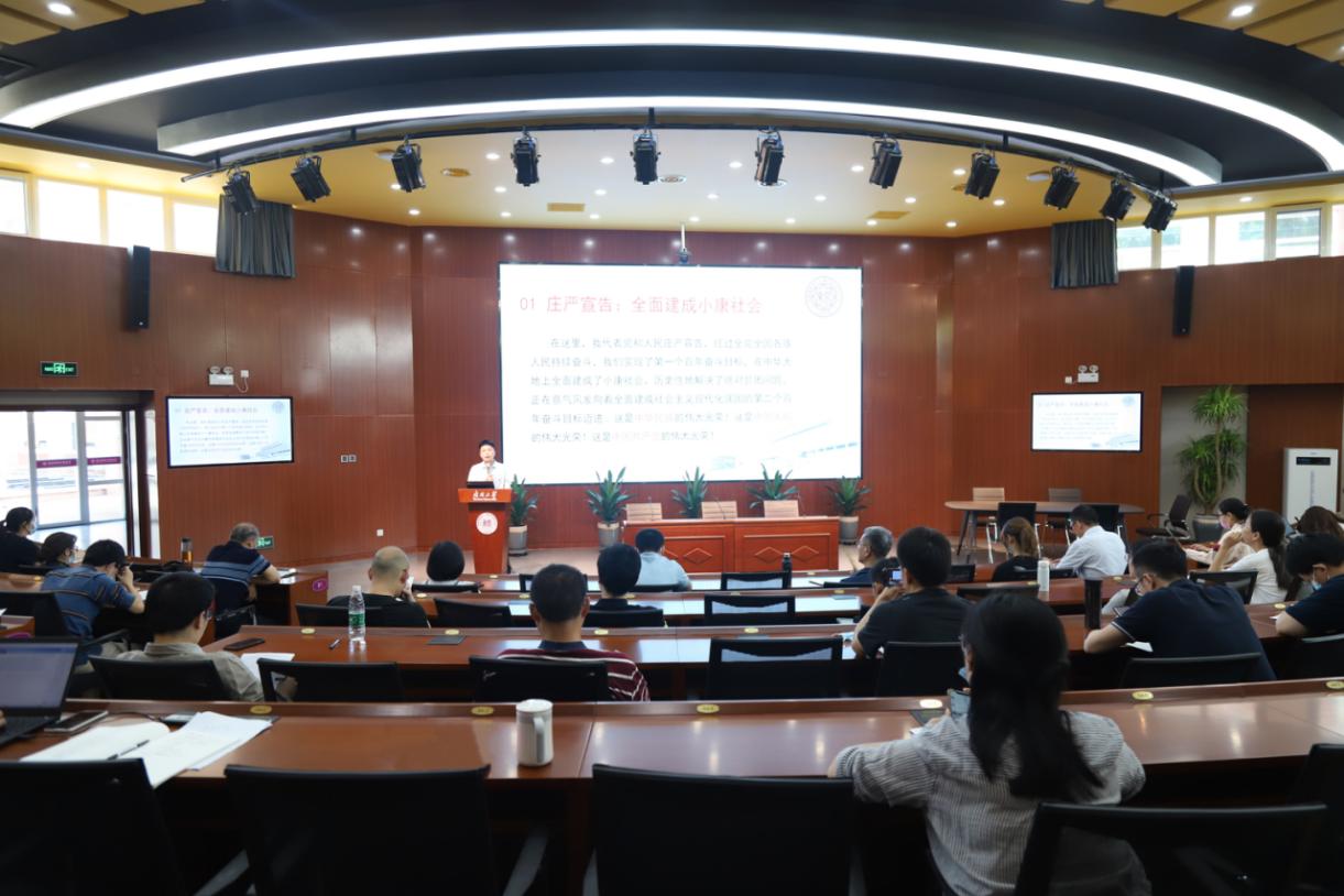 9月23日下午,雷速比分 党总支邀请学校党史学习教育宣讲团成员刘一博老师到学院开展学习贯彻习近平总书记在庆祝中国共产党成立100周年大会上重要讲话精神专题宣讲第二场。学院党总支副书记任子雄主持,学院全体教师以及全体学生党员参加本次专题宣讲活动。