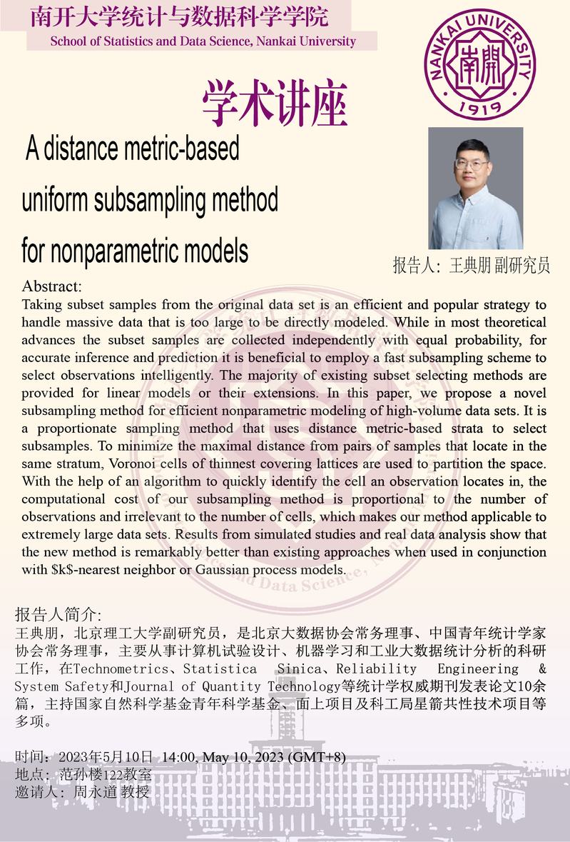 A distance metric-based uniform subsampling method for nonparametric models (王典朋)