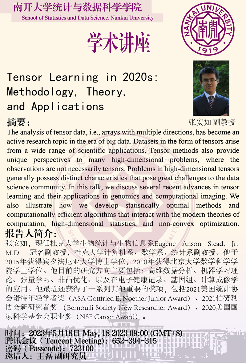 Tensor Learning in 2020s: Methodology, Theory, and Applications(张安如)