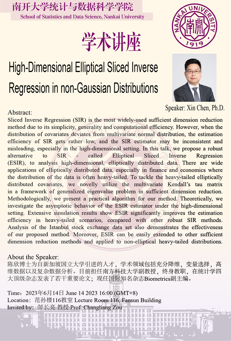 High-Dimensional Elliptical Sliced Inverse Regression in non-Gaussian Distributions (陈欣)