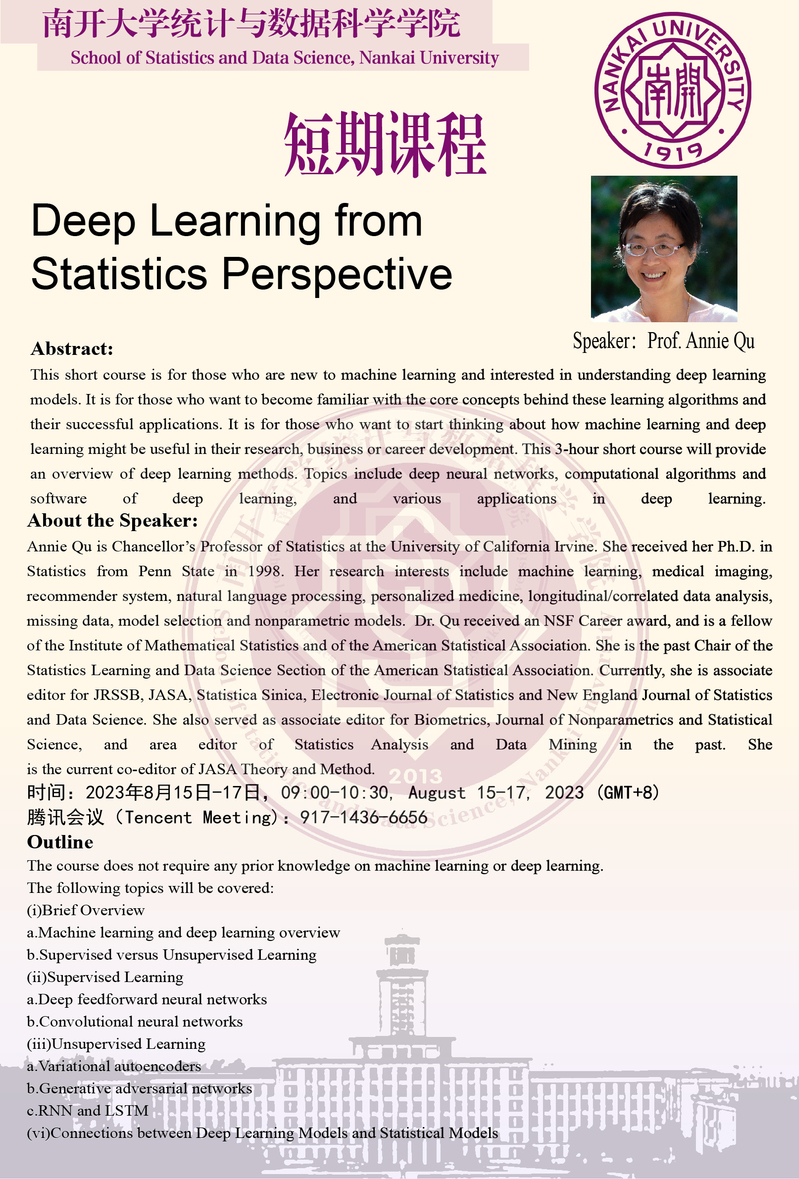 Deep Learning from Statistics Perspective(2023年8月15日-8月17日短期课程,Annie Qu)