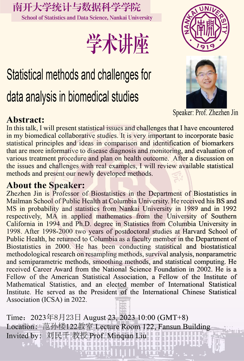 Statistical methods and challenges for data analysis in biomedical studies(金哲振)