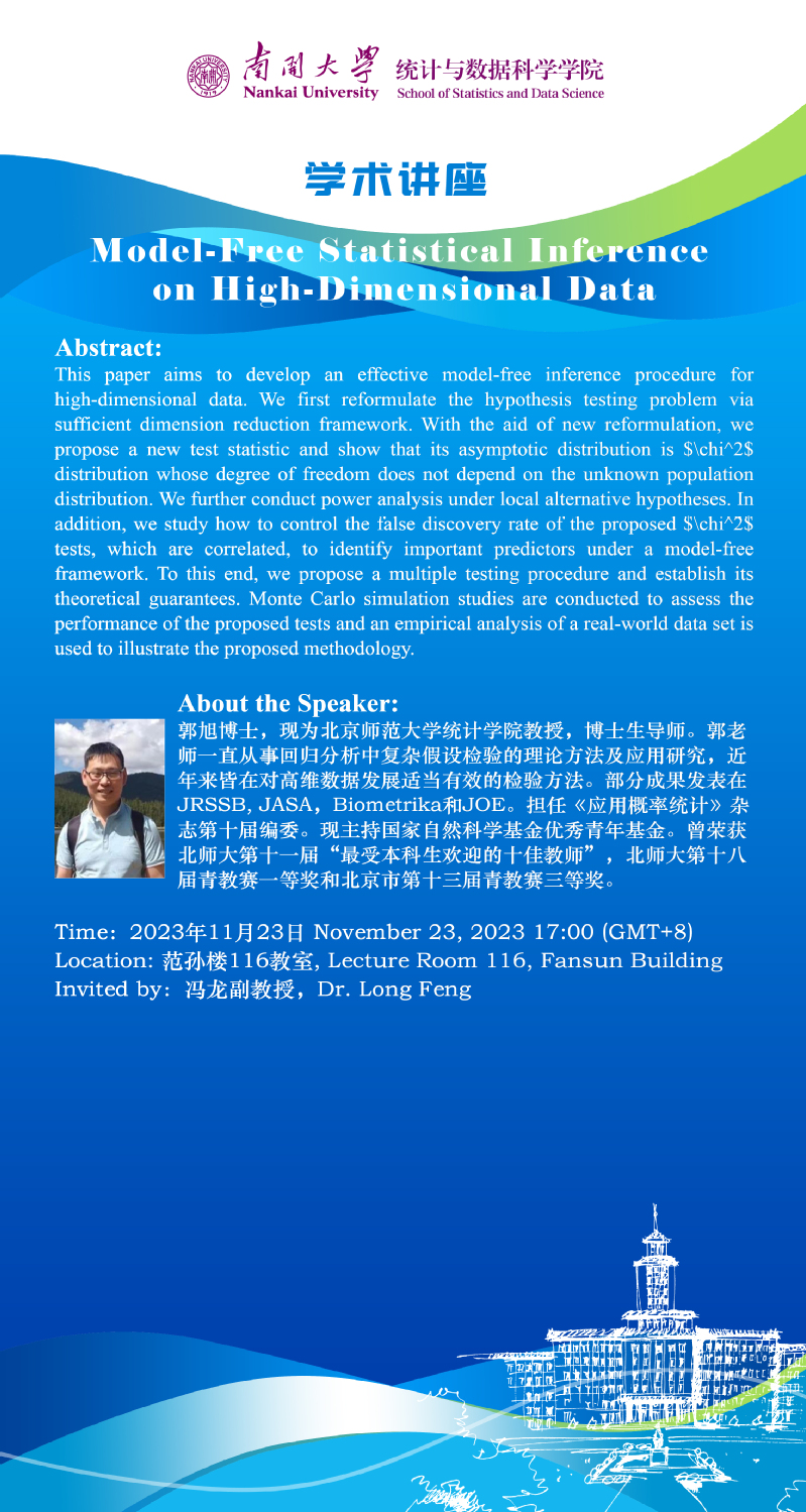 Model-Free Statistical Inference on High-Dimensional Data(郭旭)