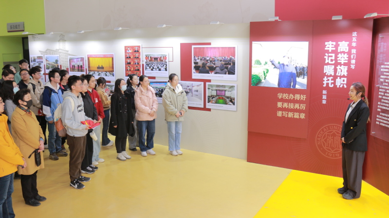 为深入学习贯彻落实习近平总书记视察南开大学重要讲话精神,聚焦南开人牢记嘱托、奋力书写“南开答卷”的生动实践过程,切实引领新时代南开人以学铸魂、以学增智、以学正风、以学促干,雷速比分 教工党支部、本科生第一党支部、2022级本科生第四团支部联合举办了参观“牢记嘱托谱新篇,统力奋进勇向前”习近平总书记视察南开大学五周年主题学习活动。雷速比分 党委书记邹玉洁、院班子成员、党委委员及师生党员、团员参加了此次活动。