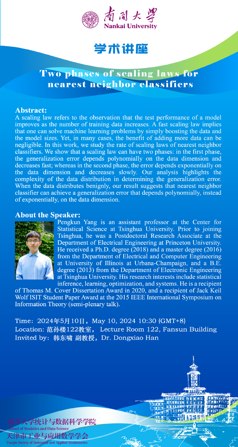 Two phases of scaling laws for nearest neighbor classifiers(杨朋昆)