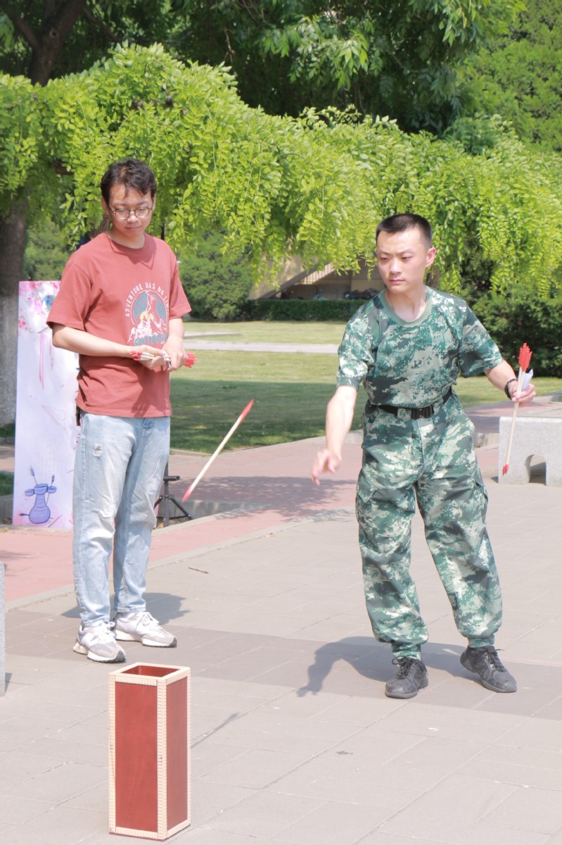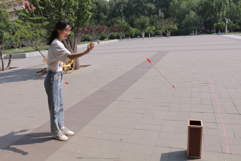 活动现场还设置了传统的投壶游戏区,这考验了同学们的耐心与技巧,更是对古代文化的一种致敬。随着一支支箭矢稳稳落入壶中,现场不时爆发出阵阵欢呼,参与者们在享受到传统游戏带来的乐趣与成就感的同时,也体会到了古代传统文化的技巧与智慧,更在竞争中体会到了友谊与包容。