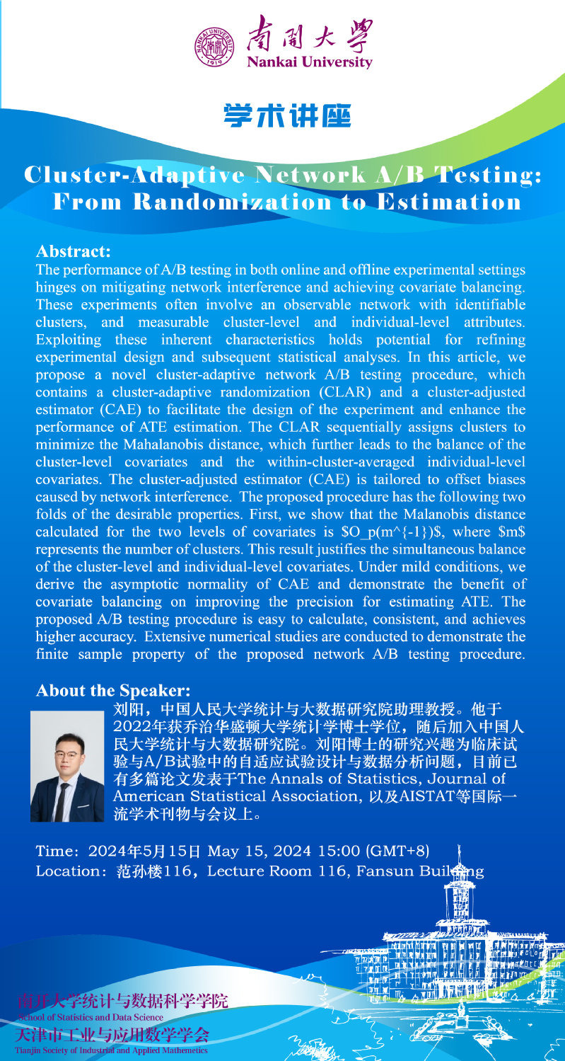 Cluster-Adaptive Network A/B Testing: From Randomization to Estimation(刘阳)