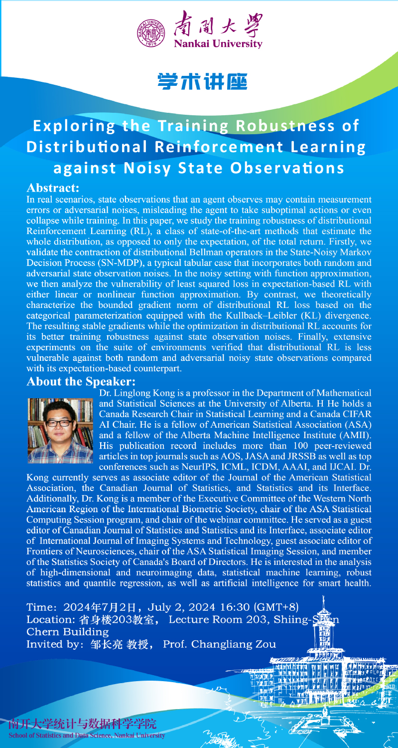 Exploring the Training Robustness of Distributional Reinforcement Learning against Noisy State Observations(Linglong Kong)