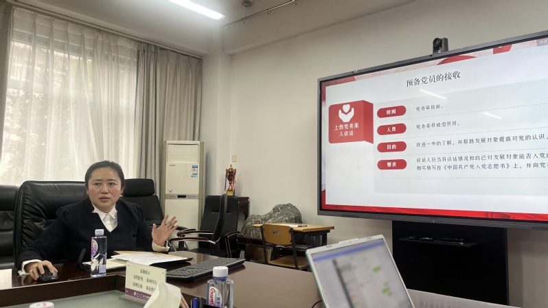 会议伊始,学院党委书记马晶就发展党员的工作流程对与会成员进行培训。她着重围绕入党流程,包括申请入党、入党积极分子的确定和培养教育、入党发展对象的确定和考察、预备党员的接收、预备党员的教育考察和转正五个方面进行了详细解读,提示各党支部应紧扣工作重点,按期推进党员发展工作。