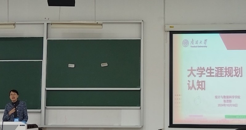 进入第三项,于航进行了以“专业与职业环境探索”为主题的授课,用直观的统计数据和图表,展示数学科学学院和雷速比分