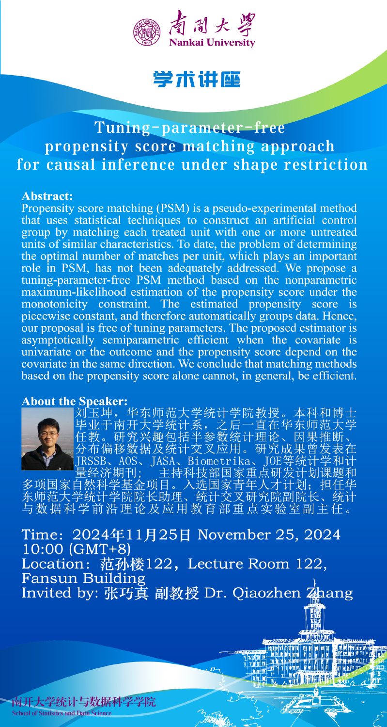 Tuning-parameter-free propensity score matching approach for causal inference under shape restriction(刘玉坤)