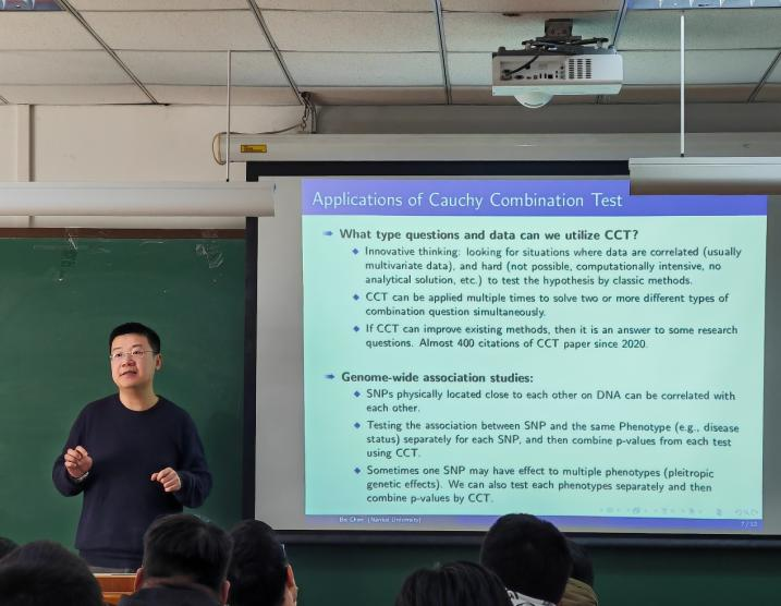 在应用部分,陈博以基因组学、纵向数据分析和零膨胀数据为例,展示了CCT的广泛适用性。例如,在GWAS中,相邻SNP因物理位置接近可能存在强相关性,CCT可直接组合各SNP的检验结果,无需预知相关性结构;在纵向数据分析中,CCT通过逐点检验并组合p值,避免了传统函数回归对数据正态性和平滑性的严苛假设。此外,他还提到CCT在模型不确定性和多表型关联研究中的潜力,并指出该论文有近400次的引用量,凸显其学术影响力。