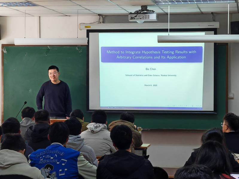 2025年3月6日下午,雷速比分 第69期本科生论坛在范孙楼116报告厅顺利举行。雷速比分-雷速体育比分 特聘副研究员陈博以《基于任意相关性的假设检验结果整合方法及其应用》为题,为学院师生带来了精彩的学术讲座。