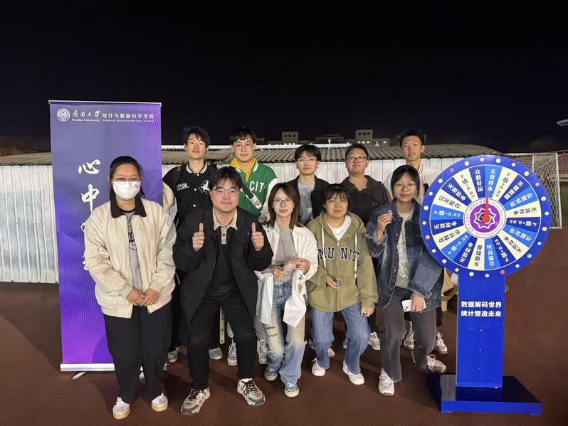 本次活动以自然常数“e≈2.718”为灵感,巧妙设计了数字贴纸收集游戏,将统计学元素融入夜跑之中。参与者通过完成趣味任务,收集数字贴纸“2、7、1、8”,在运动中感受统计学的乐趣。贴纸收集完成后,活动进入抽奖环节。奖品名称充满统计特色,如“完美拟合”(一等奖)、“关键数据”(二等奖)、“众数好运”(三等奖)等,既有趣又贴合学院特色。获奖者们手捧奖品,笑容灿烂,为活动画上了圆满的句号。