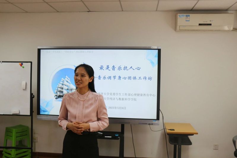 5月8日下午,“统心同行”心理辅导站精心策划的“音海疗心,心弦共振”团体辅导课在范孙楼118室温暖开启,吸引众多同学报名参与,共同开启一场独特的心灵疗愈之旅。本次团辅课邀请到了国家二级心理咨询师、天津音乐学院文迪担任活动主讲人。