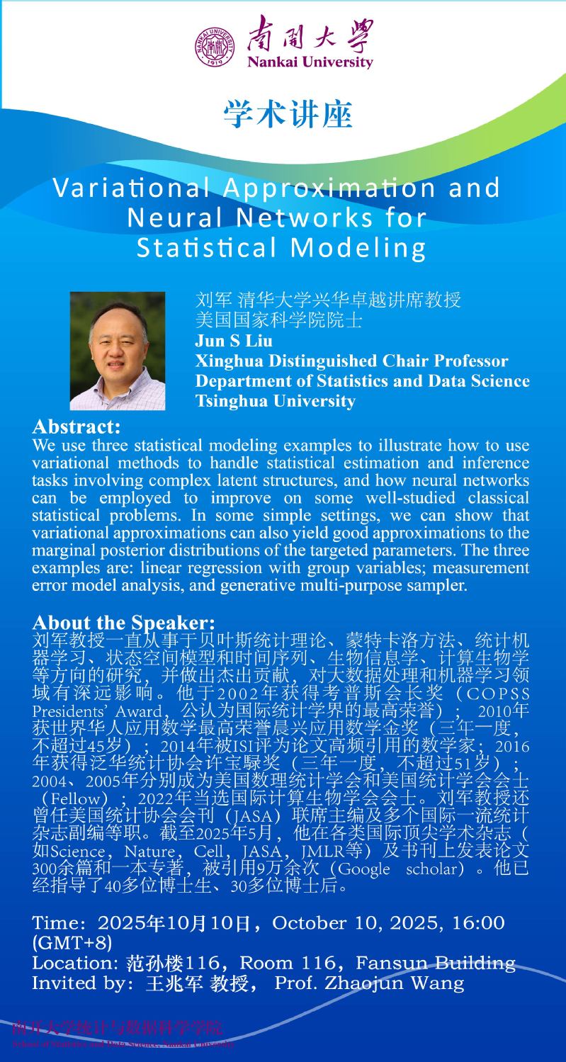 Variational Approximation and Neural Networks for Statistical Modeling(刘军)