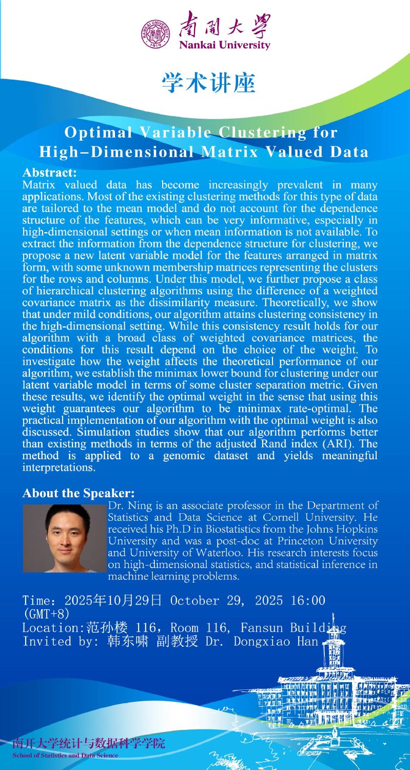 Optimal Variable Clustering for High-Dimensional Matrix Valued Data(宁洋)