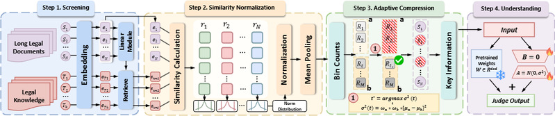 法律案件事实描述通常极为冗长、结构复杂,给大语言模型的推理效率和预测准确性带来了巨大挑战。现有方法如稀疏注意力、层次化建模或摘要压缩,往往难以在保留关键信息与控制计算成本之间取得良好平衡。